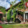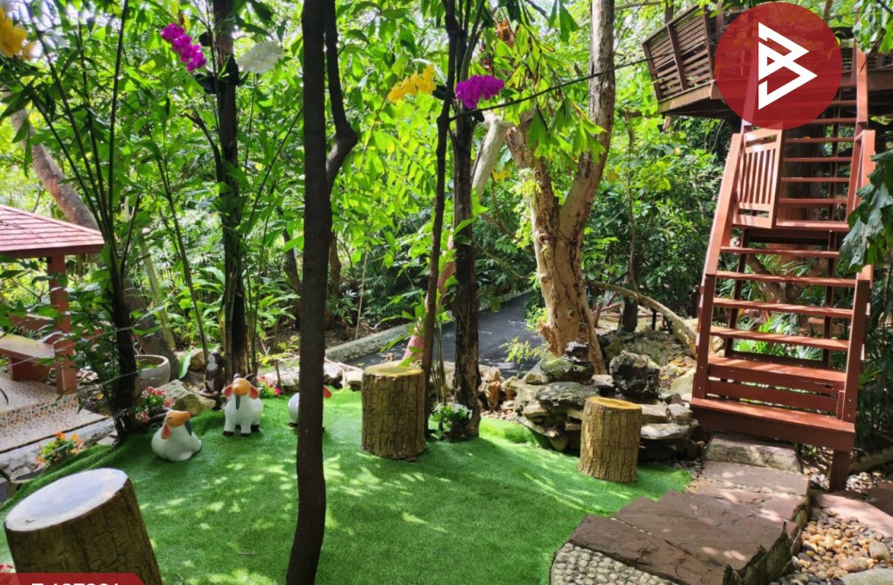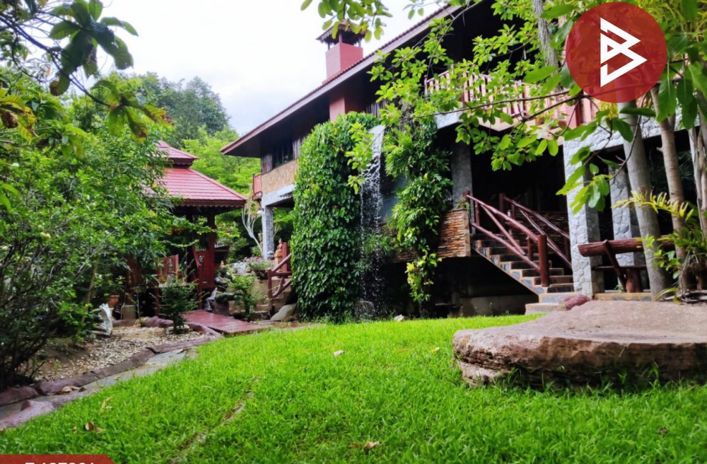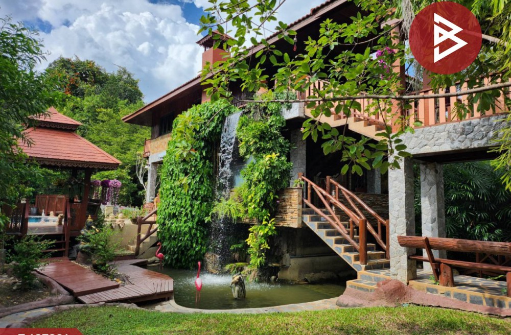 บ้านสไตล์ล็อกเคบิน (Log Cabin) ขนาด 5 ห้องนอน 4 ห้องน้ำ 1 เรือนรับรอง 1 บ้านพักคนดูแล 1 สระว่ายน้ำ 1 ศาลาบนต้นไม้ กับอีกหลายศาลารอบพื้นที่ และศาลาริมน้ำ 2 ชั้น