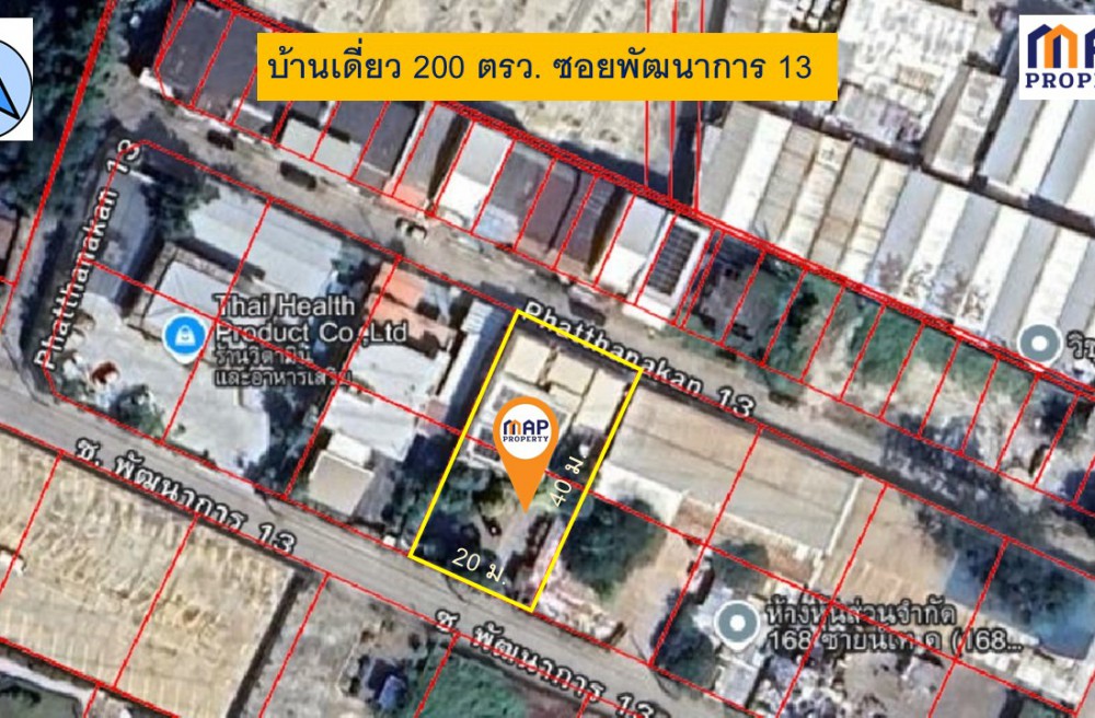 - รูปแปลงที่ดินสวย ขนาด 20 × 40 ม. หน้าหลังติดถนนซอย
