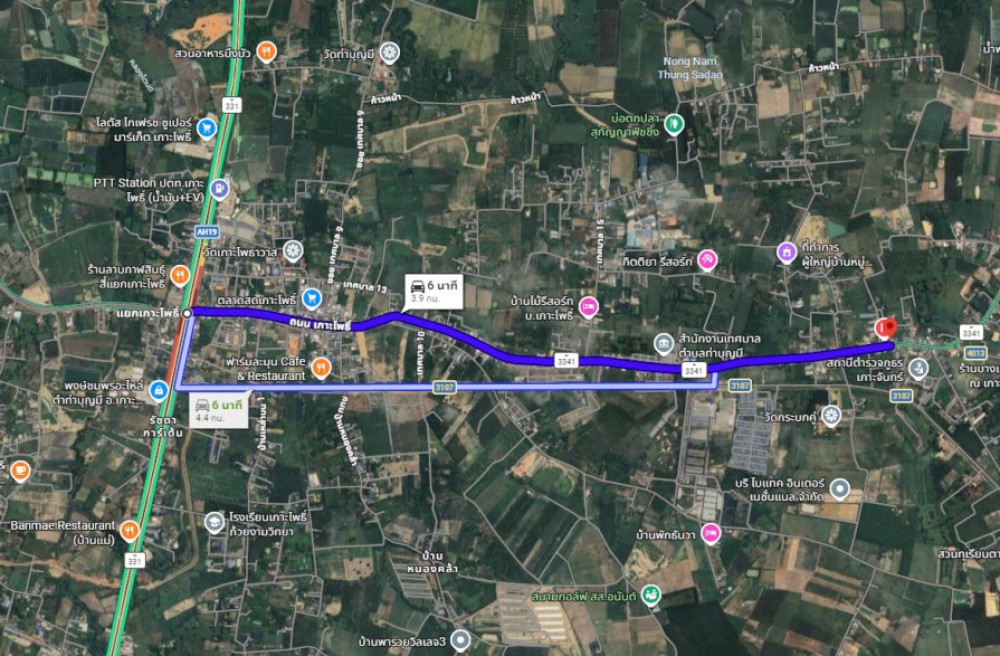 - ถนน 3246 (แยกโรงน้ำแข็ง) 13 Km