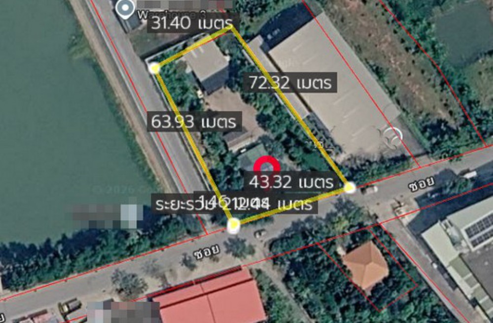 ที่ดินกว้างติดถนนประมาณ 43เมตร ด้านหลังกว้างประมาณ 31เมตร