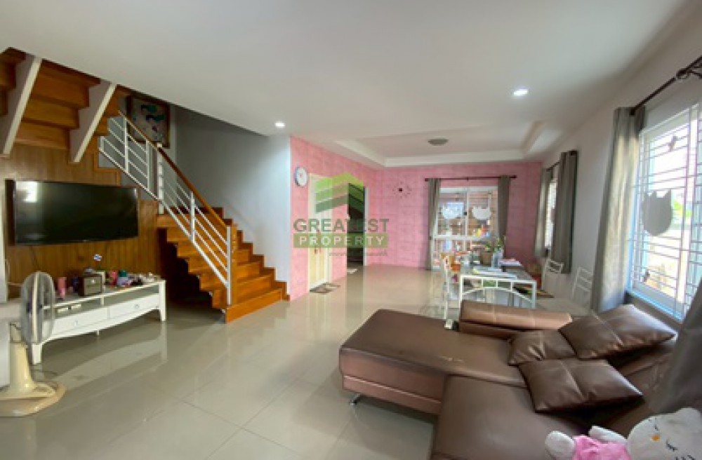 ตกแต่ง : บ้านแฝด 2 ชั้น พื้นที่ใช้สอย 117.85 ตร.ม ชั้นล่างปูพื้นกระเบื้องแกรนิตโต้ 1 ห้องนั่งเล่น, มีห้องเก็บของใต้บันได 1 ห้องน้ำ, 1 ห้องครัว ต่อเติมหลังบ้านเต็มพื้นที่ เป็นโซนซักล้าง ชั้น 2 พื้นลามิเนต แบ่งเป็น 3 ห้องนอน, 1 ห้องน้ำ บ้านใหม่ สภาพนางฟ้า ต่อเติมหลังคาหน้าบ้าน ปูพื้นกระเบื้องเต็มพื้นที่ จอดรถได้ 2 คัน แต่งสวนหินรอบบ้าน มุมนั่งเล่น ตัวบ้านโปร่งโล่ง บรรยากาศดี พร้อมอยู่อาศัย