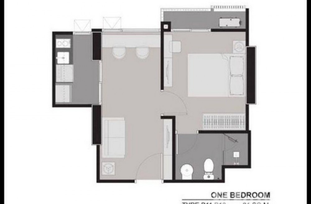 - ขนาด 1 ห้องนอน, 1 ห้องน้ำ