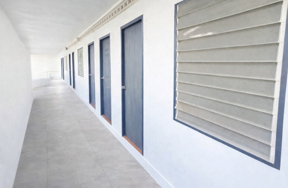 พื้นที่ด้านข้างมีส่วนพักอาศัยเพิ่มเติม แยกเป็นสัดส่วน มีห้องนอนถึง 6 ห้อง และห้องน้ำ 1 ห้อง รองรับพนักงาน หรืออยู่อาศัยได้สะดวก