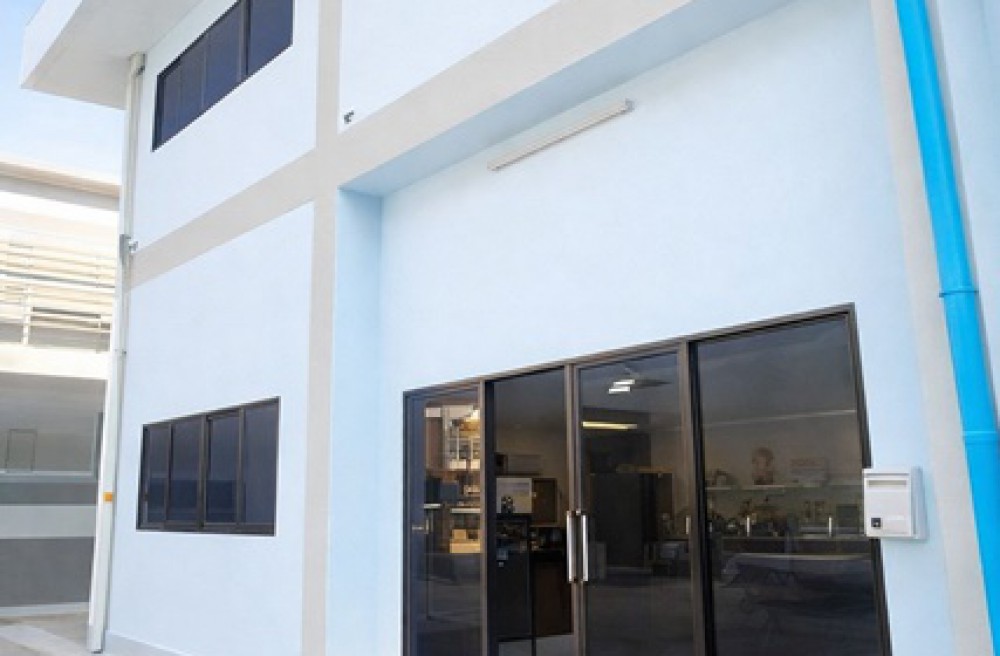 Thai Watsadu BangBon The cheapest 2 story factory building 100 sq.wa. 400 sq.m. in the world at 75baht-sqm. Solid structure 6 bed 3 bath near Wat Pho Chae 300 m. on Ekachai Road spacious area 29,998 B-M suitable for warehouse or business with adjacent residential space versatile use located in Samut Sakhon near community areas Mahachai New City Market 2.5 km. and convenient transportation