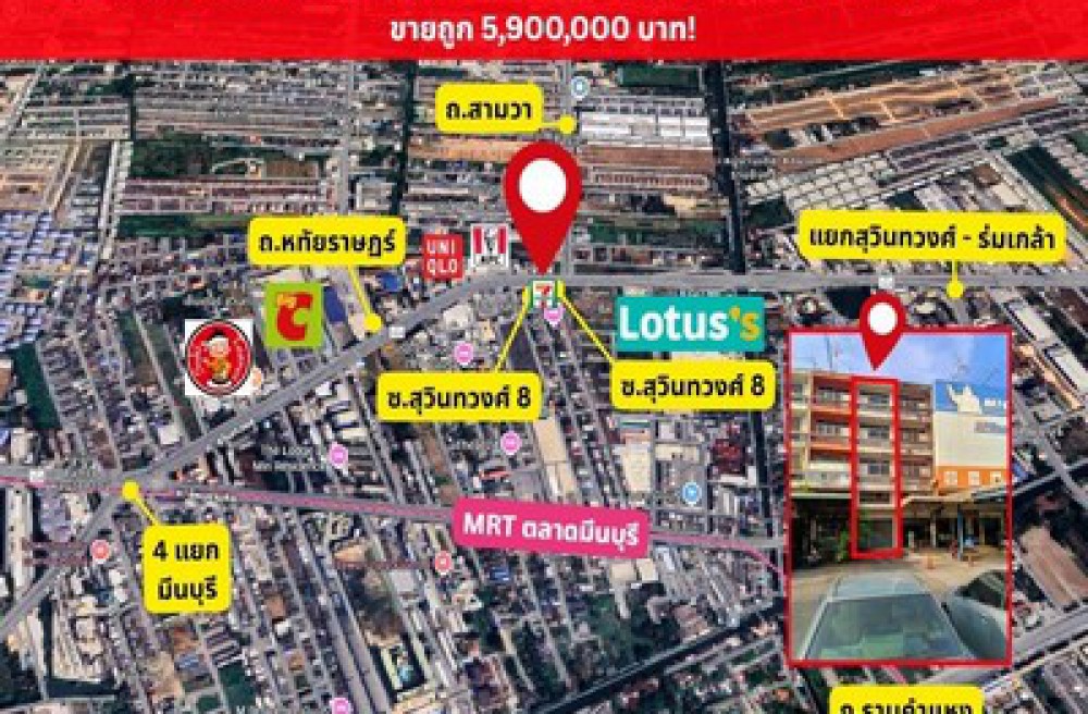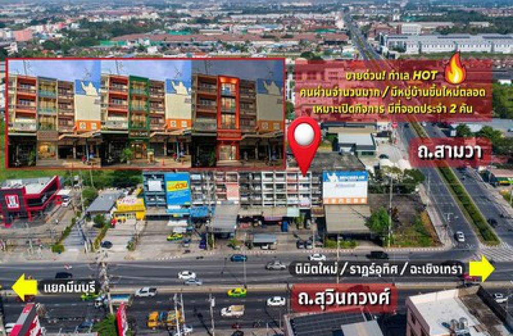ขายอาคารพาณิชย์ติดถนนสุวินทวงศ์ (หน้าปากซอย เข้าถนนสามวา) ใกล้ 4 แยกมีนบุรี