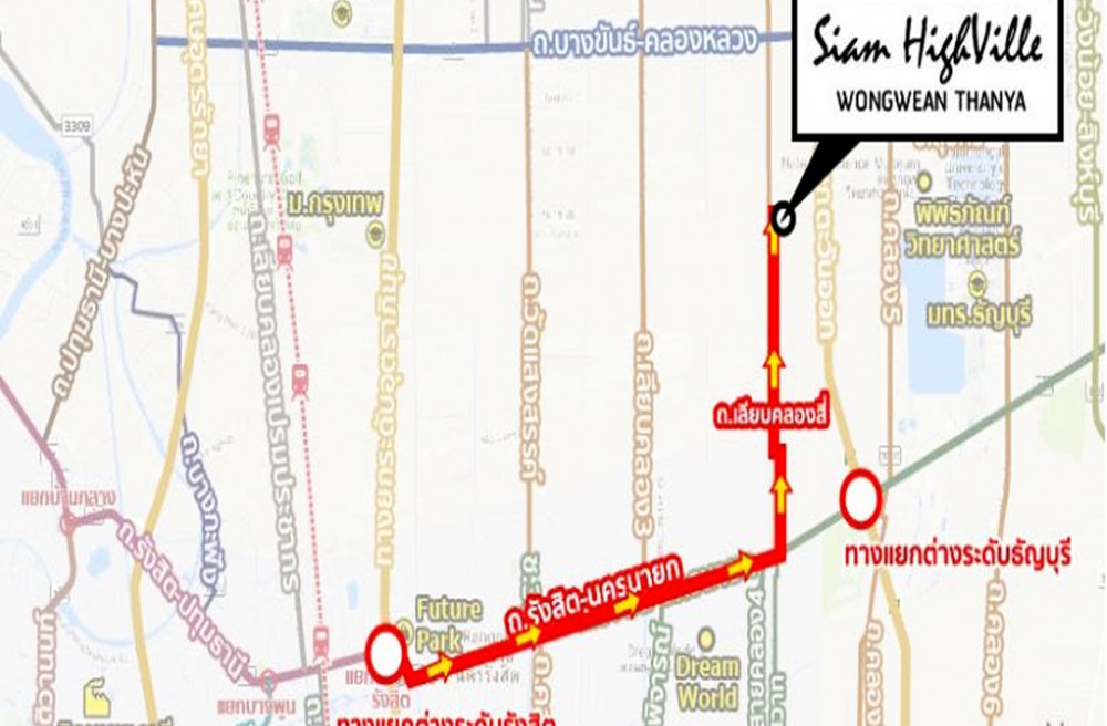 การเดินทาง เริ่มจาก ถ.รังสิต-นครนายก ⇒ ถ.เลียบคลองสี่ ขับตรงไป 5 กม. ถึงโครงการ สยามไฮวิลล์ วงแหวนธัญญะ *ใกล้วัดเพิ่มทาน