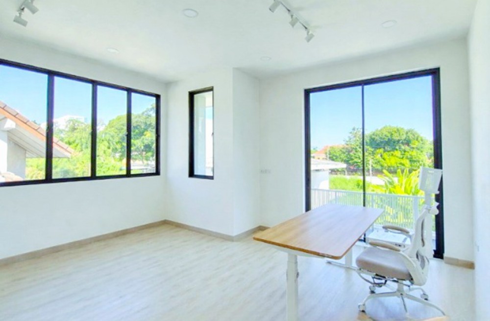 ห้องทำงานขนาดใหญ่ วิวสีเขียว แสงธรรมชาติเข้าถึง พร้อมระบบไฟ 3 โทน เหมาะสำหรับทำงานหรือไลฟ์ขายของ