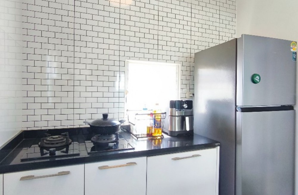 เครื่องปรับอากาศ 2 เครื่อง, เครื่องทำน้ำอุ่น, ปั๊มน้ำ, แท้งค์น้ำ, ผ้าม่านทั้งหลัง, เฟอร์นิเจอร์ Built In (บางส่วน)