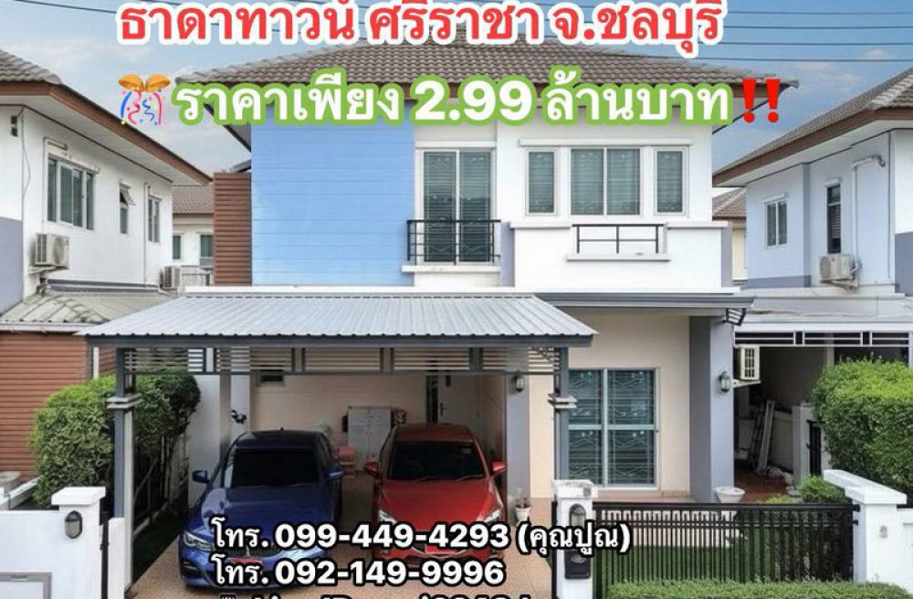 บางละมุง , จังหวัดชลบุรีขายด่วน!! บ้านเดี่ยว หมู่บ้านธาดาทาวน์ ศรีราชา จ.ชลบุรี