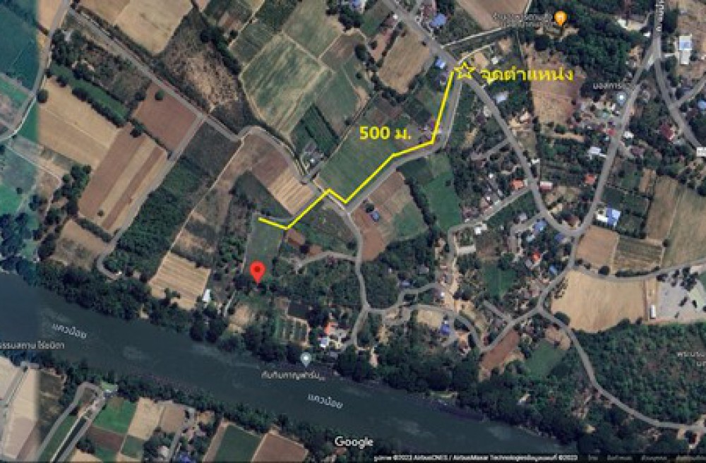 - กว้าง 80 ม.ที่ติดหน้าน้ำ ( แม่น้ำแควน้อย )
