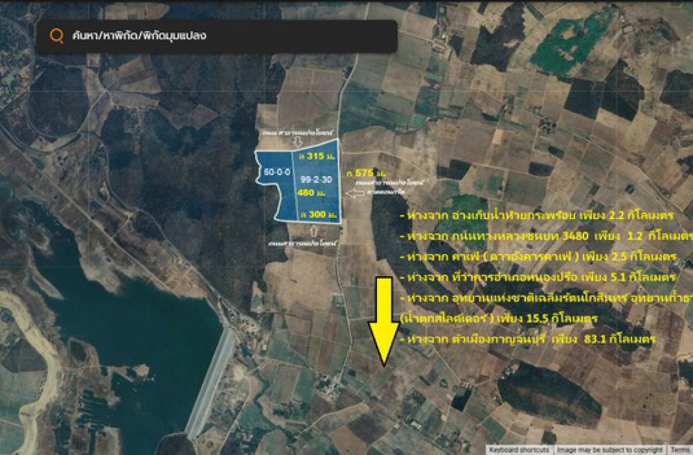 - กว้าง 575 ม. *ติดถนนคอนกรีต ( หน้ากว้างมาก )