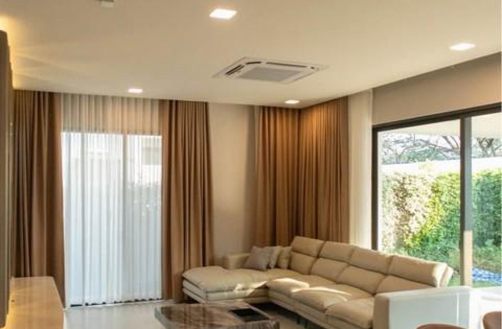 • บ้านใหม่ยังไม่เคยเข้าอยู่ ตกแต่งครบ พร้อมอยู่ มีระเบียงหลังบ้านรับลมทิศใต้