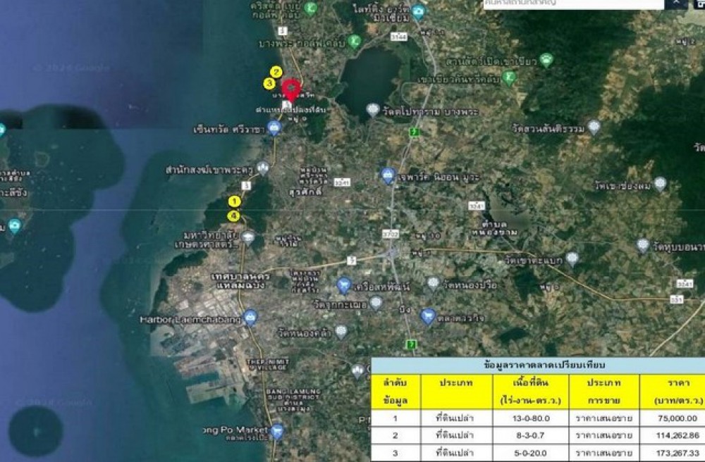 ขายที่ดินบางพระ ศรีราชา ชลบุรี ติดถนนสุขุมวิท ทล.3 ทำเลสวย