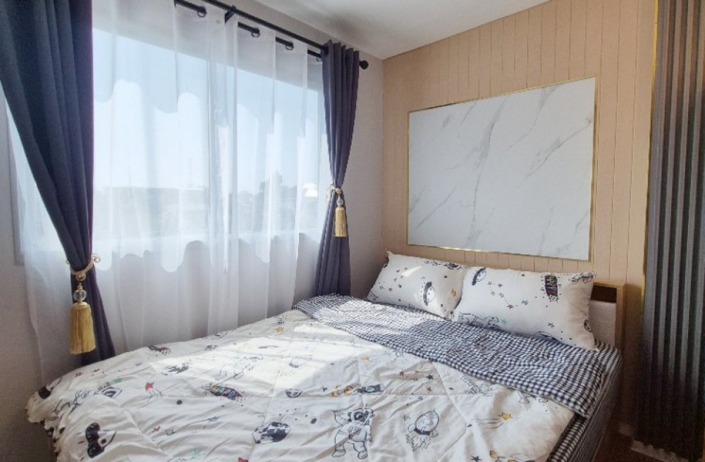 แอร์ 1 ตัว, ตู้เย็น, โซฟา, ไมโครเวฟ, ผ้าม่าน