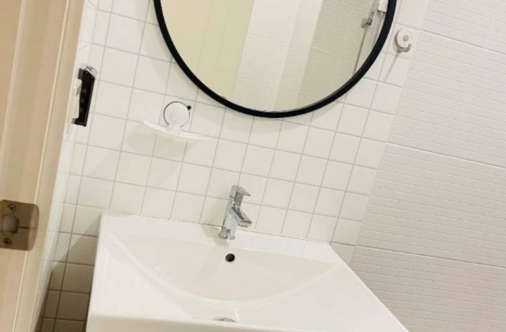 เครื่องทำน้ำอุ่น ผ้าม่าน 2 ชุด ตู้เย็น พัดลม ผ้าปูที่นอนกันเปื้อน ราวตากผ้า โต๊ะรีดผ้า เก้าอี้เล็ก