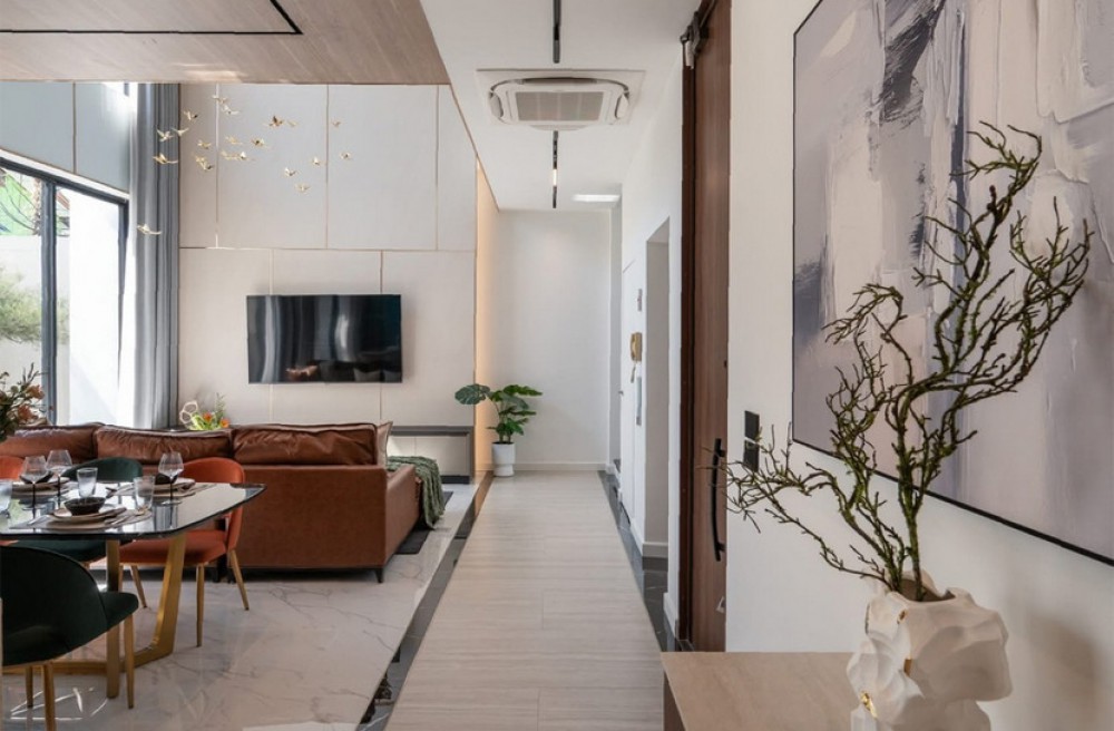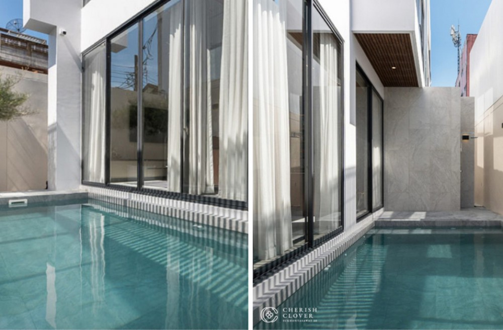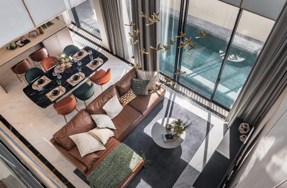 ● Double-Volume Living โปร่งโล่ง เชื่อม สระว่ายน้ำส่วนตัว (Indoor–Outdoor Flow)