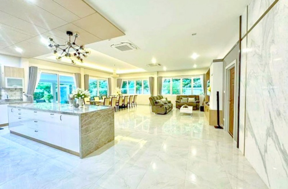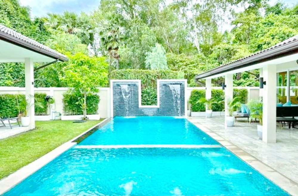 For Rent Pool Villa luxurious modern detached house 6bed 7bath near HuaiYai market 900m. 215 sq.wa. 600 sq.m. 149,999 B-M. large living area private pool villa quiet private atmosphere ideal for residence or premium vacation home prime Huai Yai location near Bang Saray beach 2 km. convenient access to community