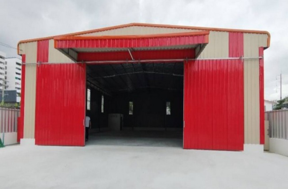 - ประตูหน้าบานเลื่อนคู่กว้าง 6 ม สูง 4.5 ม