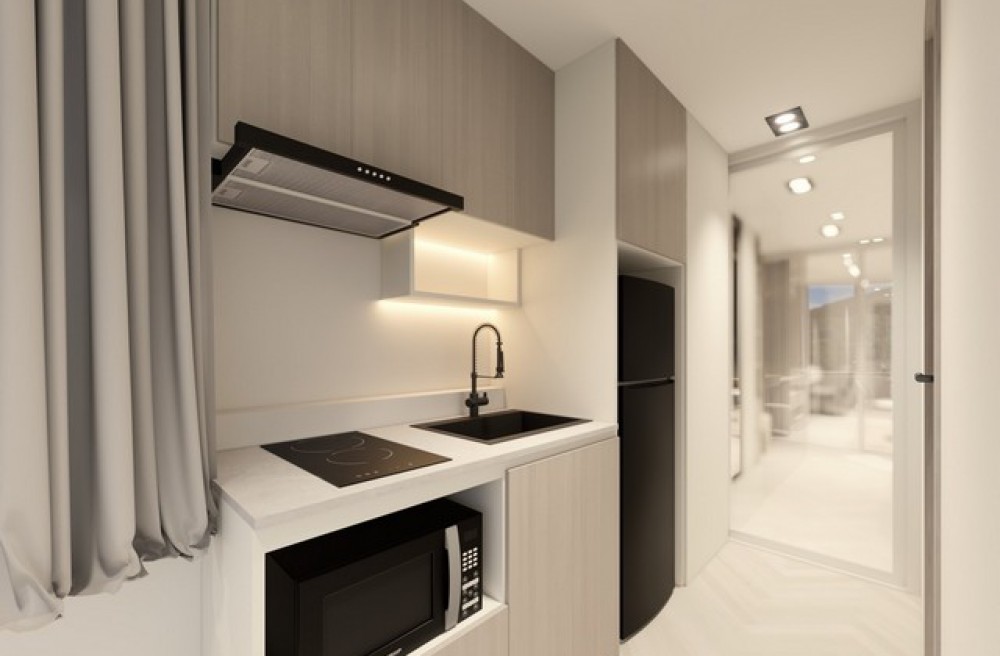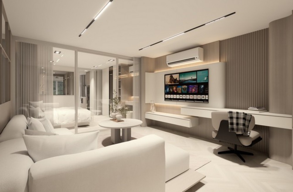 รูปแบบ 1 ห้องนอน 1 ห้องน้ำ 1 ห้องนั่งเล่น 1 ห้องครัว