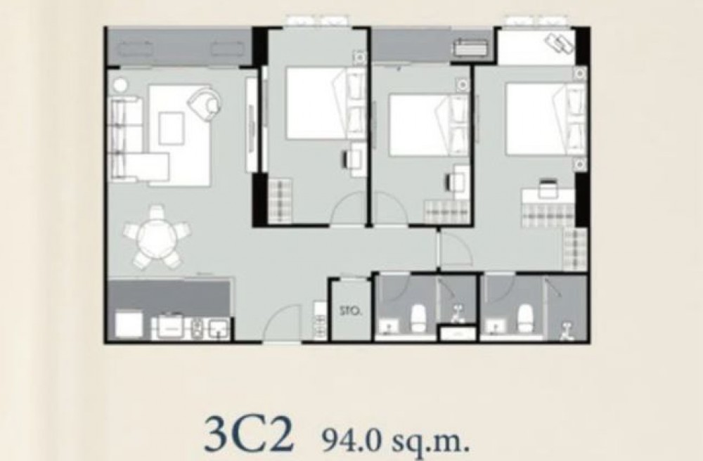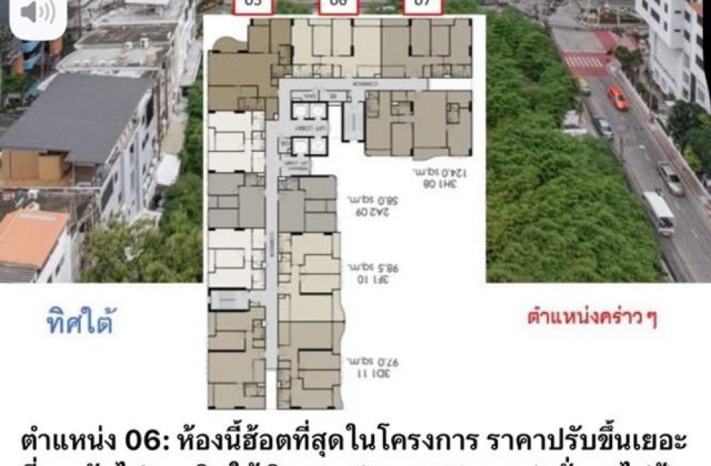 เนื้อที่ 93.5 0 ตรม. 3 ห้องนอน 2 ห้องน้ำ ชั้น9 ทิศใต้ (ตำแหน่ง06) ไม่มีตึกบังเต็มความกว้างของยูนิต ตำแหน่งห้องนี้หันทิศใต้และเป็นวิวโล่งตลอดไป