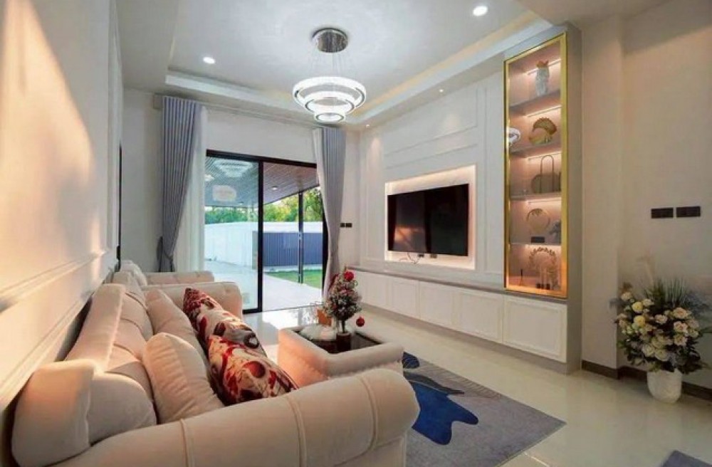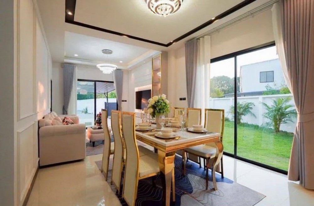 Newly built detached house, corner unit, large plot, 500 m from Sukhumvit Road, Pattaya-Naklua, Bang Lamung. Ready to move in. Prime location.
