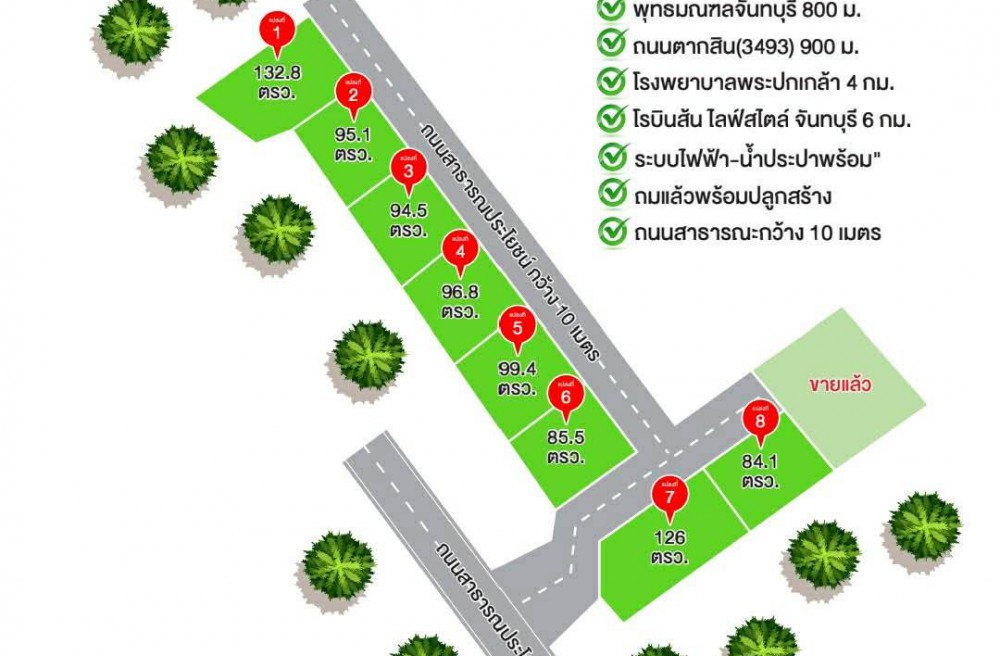 ขายถูกมาก!! ที่ดินแปลงสวย 84.1 - 132.8 ตร.ว. ทำเลทอง อ.เมือง จ.จันทบุรี ใกล้พุทธมณฑลจันทบุรี ห้างฯ