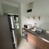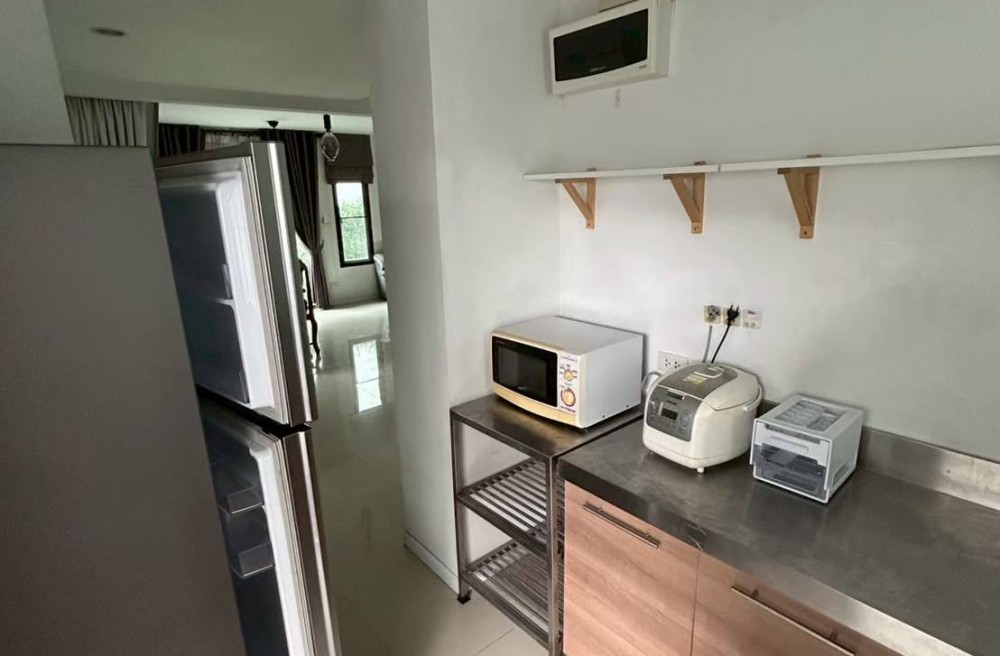 โซนครัว & ซักล้าง: เคาน์เตอร์ท็อปสแตนเลส, เตาแก๊ส 2 หัว, ไมโครเวฟ, ตู้เย็น Samsung 12 คิว, หม้อหุงข้าว, เครื่องซักผ้าฝาหน้า Electrolux 9 kg. พร้อมปั๊มน้ำและถังสำรอง