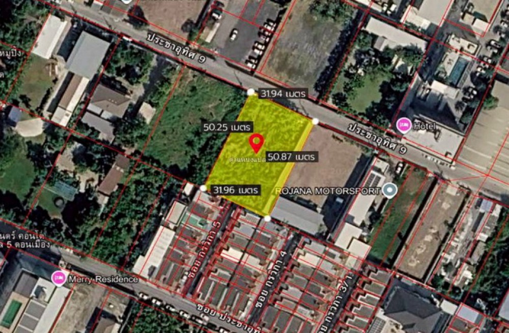 ให้เช่าที่ดิน ประชาอุทิศ9 ถนนวิภาวดีรังสิต แขวงดอนเมือง เขตดอนเมือง กรุงเทพมหานคร รายละเอียดทรัพย์ – ที่ดิน เนื้อที่ 386 ตารางวา แปลงสวย ถมแล้ว ทิศตะวันออก – หน้ากว้าง 32 x 50 เมตร สิ่งแวดล้อมดี ทำเลดี – ด้านหน้าถนนสาธารณประโยชน์ ข้างๆเป็นบริษัท บ้านพักอาศัย – ถนนกว้างเชื่อมต่อกับถนนหลักสรงประภา, วิถาวดี, แจ้งวัฒนะ สถานที่ใกล้เคียง – รร.พระหฤทัย, รร.สีกัน – รพ.จุฬาภรณ์ – สำนักงานเขตดอนเมือง – สนามบินดอนเมือง – สถานีรถไฟดอนเมือง – กองทัพอากาศ การเดินทาง – ตั้งบน ถ.วิภาวดีรังสิต – เชื่อมต่อ ถ.สรงประภา, แจ้งวัฒนะ – ใกล้ทางด่วนศรีสมาน – ใกล้วงแหวนตะวันตก – ใกล้รถไฟฟ้าสายสีแดงสถานีดอนเมือง