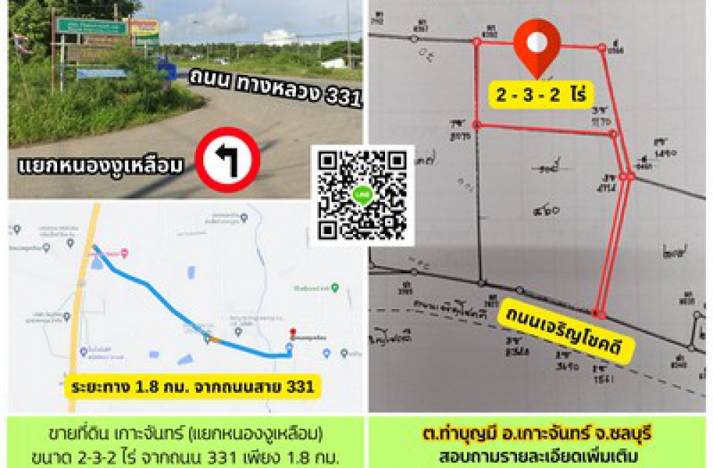 ตำแหน่งที่ดิน ห่างจากถนนทางหลวง 331 เพียง 1.8 กม.