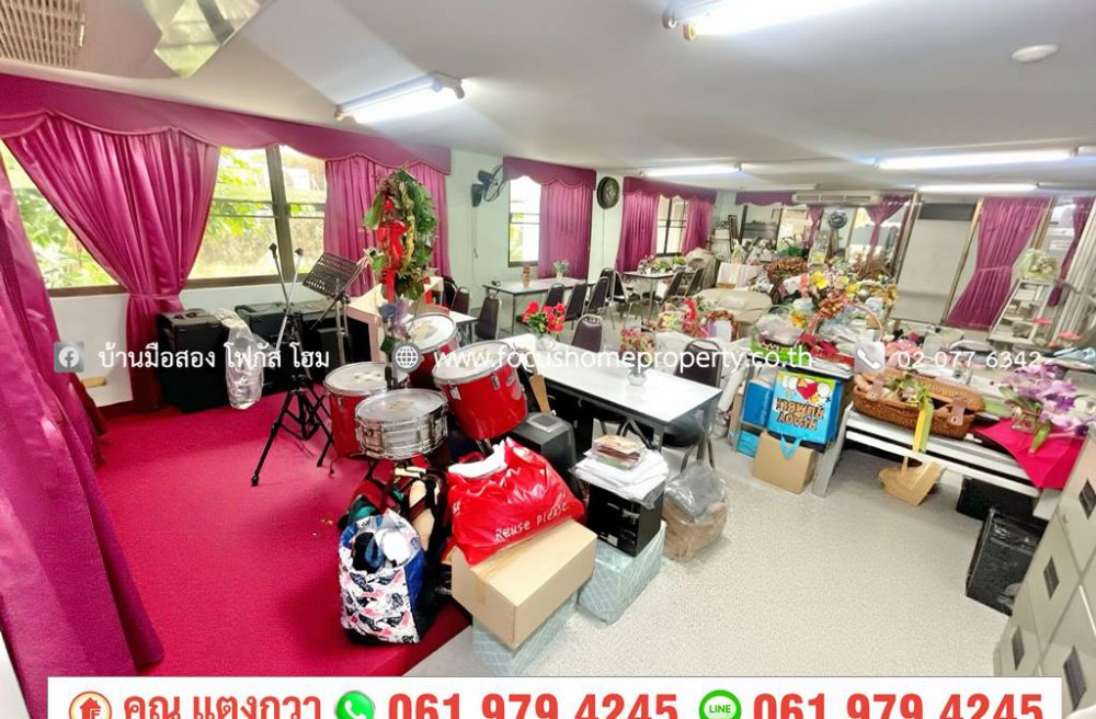 : 1 ห้องโถงใหญ่ 3 ห้องประชุมเล็ก ห้องน้ำ ห้องเก็บของ ที่จอดรถ