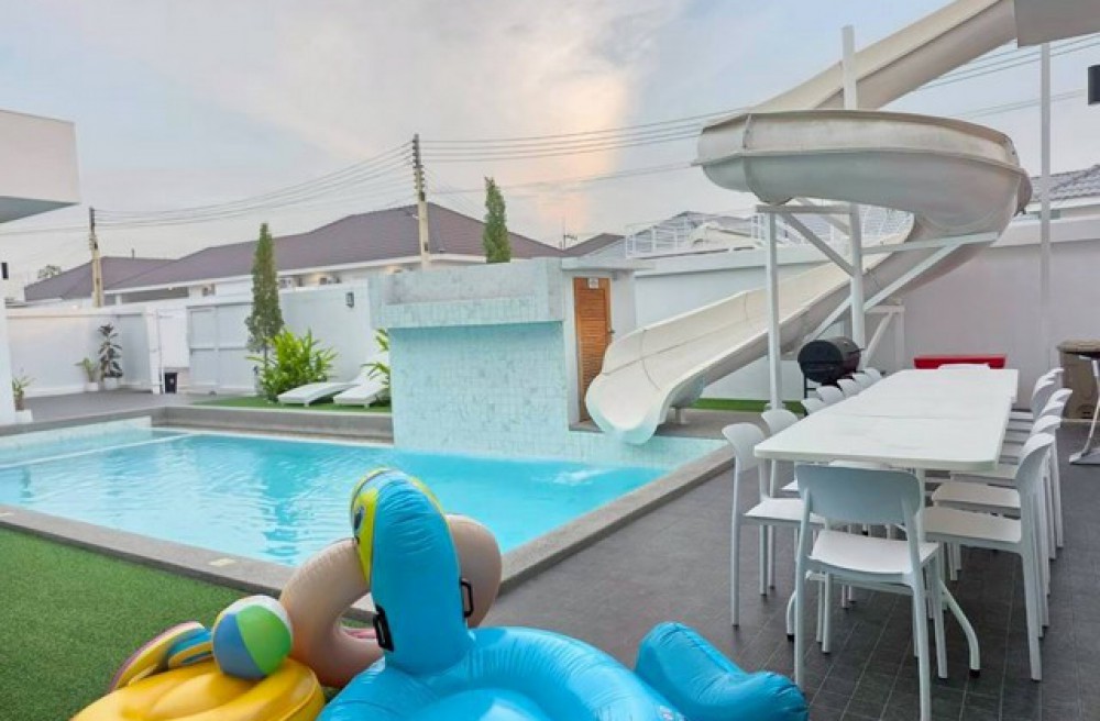 บางละมุง , จังหวัดชลบุรีขายพูลวิลล่า ห้วยใหญ่ พร้อมแถมเฟอร์นิเจอร์ และเครื่องใช้ไฟฟ้า พร้อมทำธุรกิจได้เลย (ผู้เช่าสัญญา 2 ปีเต็ม)
