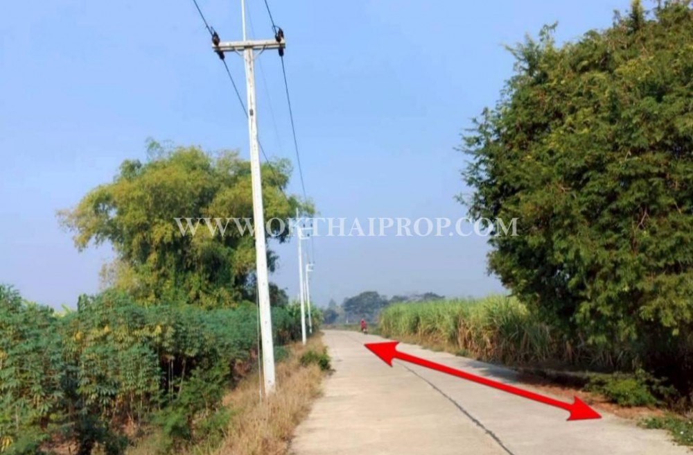 -แปลงใหญ่ติดถนนคอนกรีต , แปลงเล็กด้านหน้าติดถนนคอนกรีต ด้านหลังติดคลองชลประทานมีน้ำตลอดปี