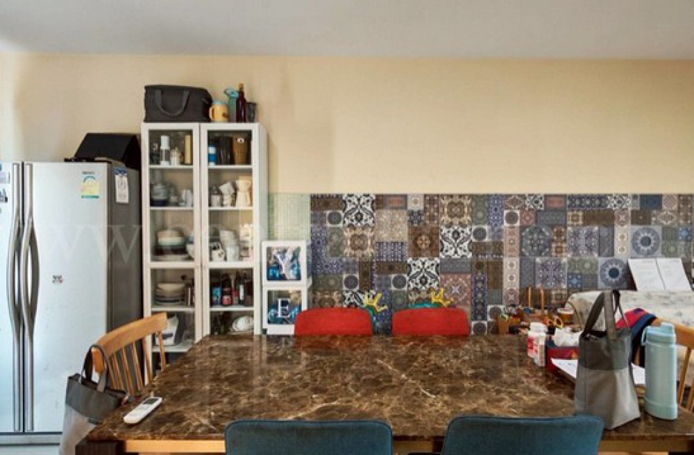 - วัสดุพื้น : ชั้นล่างปูกระเบื้อง / ชั้นบนพื้นลามิเนต