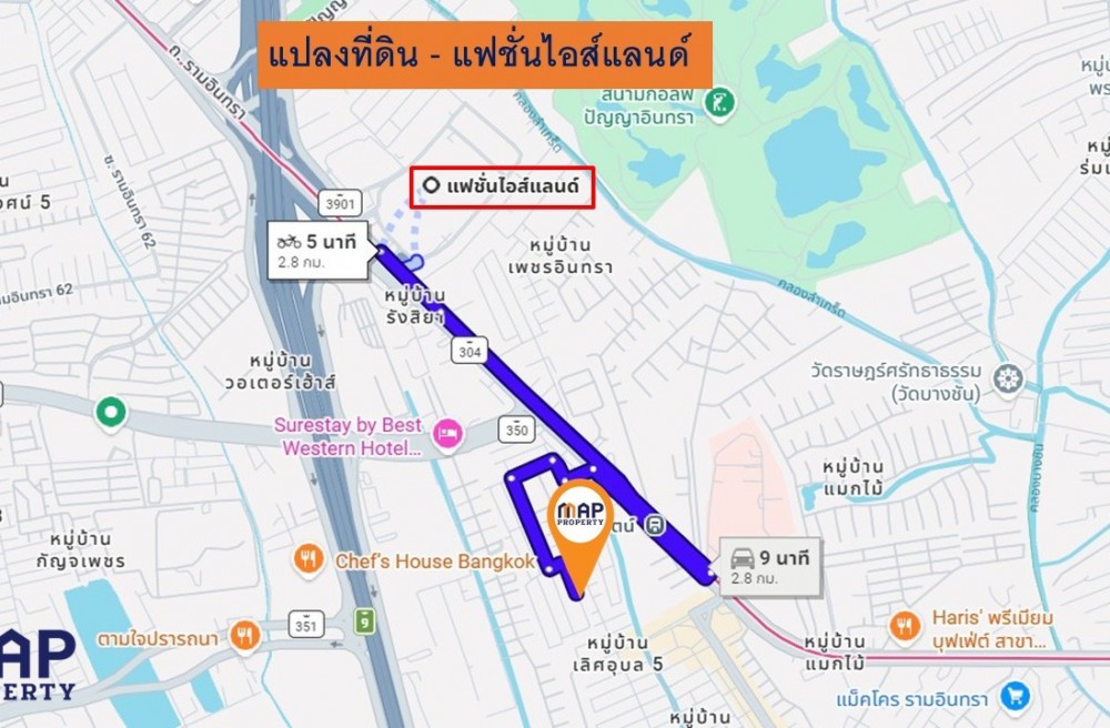 - เข้าออกสะดวก จากปากซอยรามอินทรา 68 เพียง 500 ม. ถนนซอยผ่านหน้าแปลงที่ดินไม่ตัน